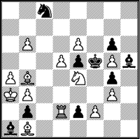 | 4 Die Planstruktur ist sehr subtil und komplex. Dem Erfolg des Grundangriffs 1.L:f2 steht das Hindernis (1) Be2 im Weg. 1.e4? (1l. Vorplan) scheitert nur am Patt (Hindernis II). Daher 2. Vorplan 1.e3!?, und nach 1.- T~ folgt 2.e4+ Tf2 2.L:f2#. Neues Hindernis (III) ist 1.- T:d2! (natürlich). Dieses Hindernis wird dadurch beseitigt, dass man den wT weg und wieder zurückspielt. Also 1.d4 Tg2 2.d5+ Tf2 3.Td4 Tg2 4.Tc4+? (z.B.) Tf2. Der Plan 5.e3 Tg2 6.e4+ berücksichtigt alle bisher bekannten Hindernisse 7.e3 Ta2! (das einzige!). Diesen Vorgang nennen wir Planspaltung (Pläne, Spiele, Züge, Die Schwalbe 48, XII/1977, S. 393ff), und würde daher klappen, wenn nicht ein neues Doppelhindemis [IV, V] eingeschaltet worden wäre: 5.e3 Ta2! 6.e4+ T:a7 (IV ist der Angriff auf La7), aber auch 5.- T:f3! 6.e4+ Tf2 7.Td4, Tc5 T:f4!+ (V ist das Schach T:f4+, ohne das Schach ginge 8.Tc,d2+). Daher wird ein weiterer doppelzweckiger Plan nötig, der beide Hindernisse zugleich behandelt: 4.Tb4+ Tf2 5.Tb6! Tg2 6.Ta6+! (Hindernis (IV) beseitigt) Tf2 7.e3 T:f3 8.e4+ Tf2 9.Tb6, und nach 9.- T:f4+ 10.Tf6+ ist Hindernis (V) beseitigt, während nun 9.- Ta2 harrnlos ist, da 10.Tb2+ T:a7 mit 11.Tg2 (Sf3)# beantwortet wird (nach 7.Tg2 ist nur 11.Tg2# vorhanden). Die Zweckökonomie ist (nach Stefan Schneider) trotzdem gewahrt, denn es gibt Zweckkontrollspiele, die eindeutig daran scheitern, dass nur ein Hindernis beseitigt wurde, nämlich 1.d4 2.d5+ 3.Td4 Tg2 4.Ta4+!? und nur (V) bleibt, also 5.e3 T:f3! 6.Td4 nur T:f4+!. Dagegen pariert nur Ta2 (IV), wenn man es in der Lösung etwa mit 6.Tc6+? probiert: Speckmann sagt (W. Speckmann, Das logische Schachproblem, Walter Rau Verlag 1965, S. 26-28) "zweckreine koordinierte Pläne". Die gleichzeitige Ausschaltung zweier Hindernisse ist sozusagen eine der Staffelung entgegengesetzte Manier, mit zwei Hindernissen zu arbeiten. Im Sinn der Staffelung zählt das Doppelhindernis als eines. In dieser Aufgabe ist also eine Vorsorge-Staffelung vierten Grads erreicht. |
